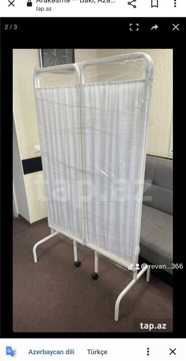 - Paravan: iki bölməli, metal çərçivə, ağ rəngli pərdə; alt hissədə hərəkəti asanlaşdıran təkərlər; yüngül və stabil konstruksiya; kabinetlərdə, prosedur otaqlarında və peyvənd məntəqələrində gizlilik yaratmaq üçün uyğundur.