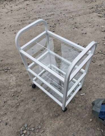- Servis arabası: metal karkas, 3 səviyyəli şüşə rəf; dörd təkərli mobil baza; alətlərin, sarğı və ləvazimatların daşınması və səliqəli saxlanması üçün rahatdır.