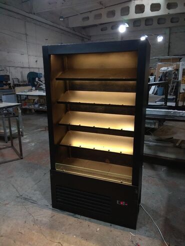 - Açıq önlü şkaf tipli soyuducu (multideck): bir neçə səviyyəli rəf, alt bölmədə kompressor bölməsi, daxili LED, elektron göstərici.