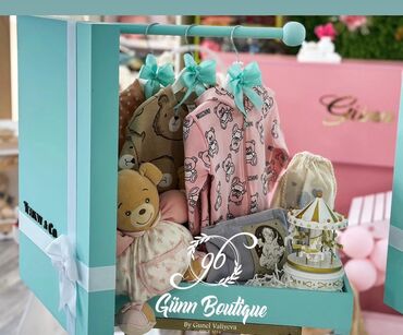 - Foto nümunələrində mümkün komplektlər: körpə paltarları, oyuncaqlar, musiqili karusel, bez dəsmallar, gigiyena məhsulları və s. (yalnız nümunə xarakterlidir)