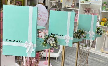 - Rəng: klassik tiffani-mavi, ağ lent və qəşəng qönçə bəzəyi