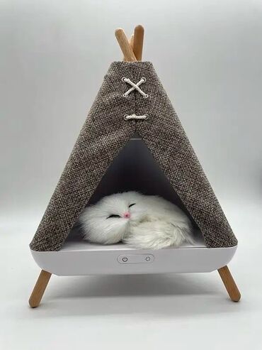Tiki-şəkilli gecə lampası – dekorativ pişik fiqurlu - Tipi: çadır (teepee) dizaynlı masaüstü gecə lampası - İşıq: isti sarı LED işıq, ön paneldə toxunmaya həssas iki düymə (On/Off və parlaqlıq tən...
