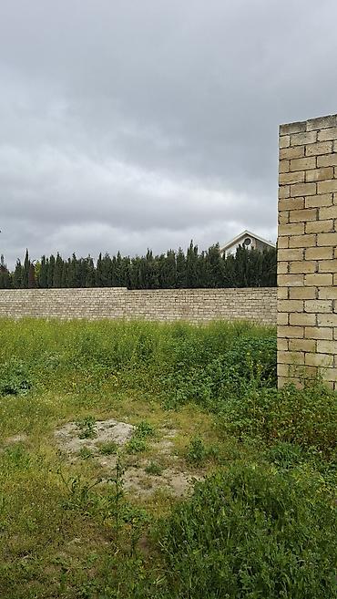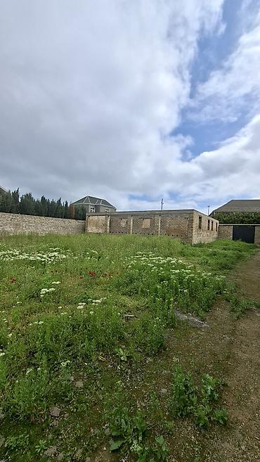 Hasarlanmış yaşayış təyinatlı torpaq sahəsi - Həyətyanı sahə tam daş hasarla əhatələnib, qonşu tikililər mövcuddur - Düz relyefli, yaşıllıq örtüyü və bir neçə ağac - Daxildə giriş/qapı yeri üçün y...