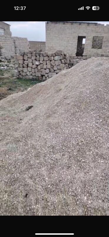 - Sahədə iri həcmdə qum-çınqıl yığını hazırdır – fundament, bağça cığırları və ya hörgü işləri üçün yararlıdır.