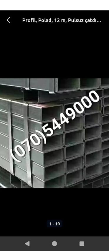 Müxtəlif ölçülü kvadrat metal profillər. Bu profillər tikinti və konstruksiya işləri üçün yararlıdır. Möhkəm və davamlı materialdan hazırlanıb. Çoxsaylı tətbiq sahələri üçün əlverişlidir.