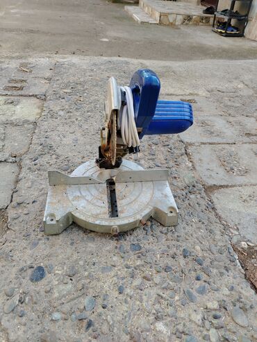 - Künc/boru kəsimləri üçün göncəli diskli mişar (miter saw): dairəvi bıçaqlı, alüminium əsaslı fiksator lövhəsi və bucaq miqyası ilə.