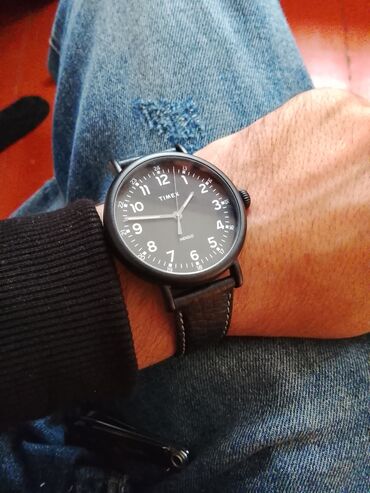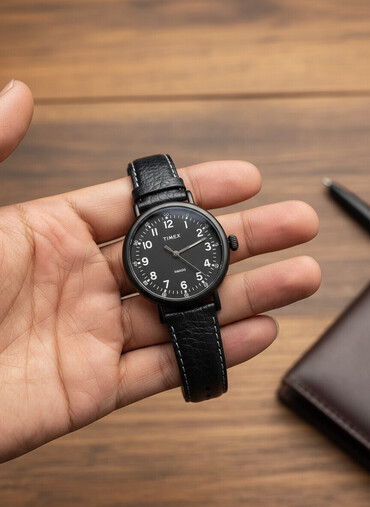 - Dəri qayış: yuxarı hissəsi qara teksturalı, ağ tikişli; daxili hissəsi karamel rəngli, “TIMEX” möhürlü