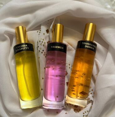 Geniş seçimli niş və brend ətirlər Məhsul: Qadın və kişi üçün müxtəlif ətirlər və ətir yağları - Şüşə: Qızılı qapaqlı dekorativ flakonlar, fərqli həcmlər; bəzilərində lentli dizayn - Notalar və üs...