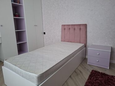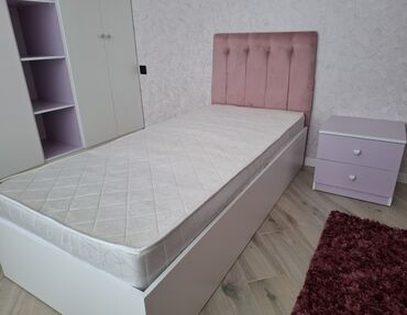 Quraşdırılıb istifadə üçün hazır görünüşlü komplekt: çarpayı çərçivəsi, yumşaq başlıq və tək nəfərlik döşək. Rahat yuxu və estetik interyer üçün ideal seçim.