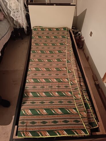 Tək nəfərlik çarpayı. Üstündə yun döşək