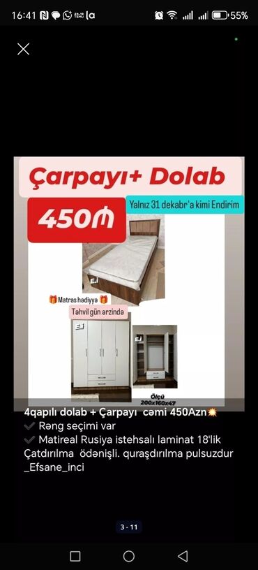 Açılan, 3 qapılı Düz dolab, Qarderob, paltar dolabı