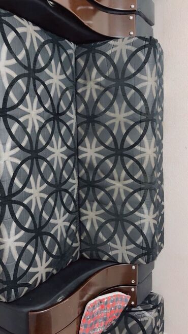 - Rəng və naxış: boz əsas üzərində qara halqalı/geometrik naxışlı kumaş oturacaq və arxa hissə
