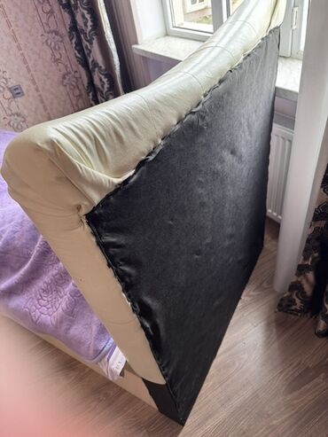 - Başlıq: yumşaq dolğulu, dəri/eko-dəri görünüşlü krem rəngli örtük, düyməli (kapitone) dizayn; yuxarı hissəsi yüngül əyri formadadır, yatağa rahat söykənmə imkanı yaradır.