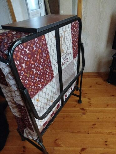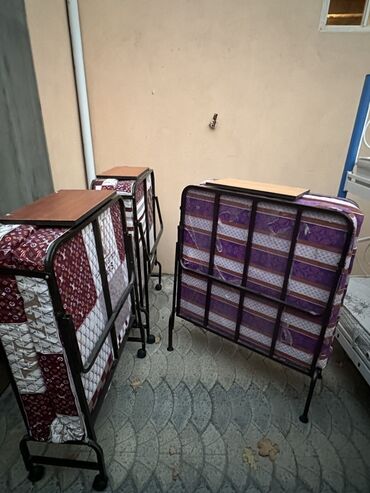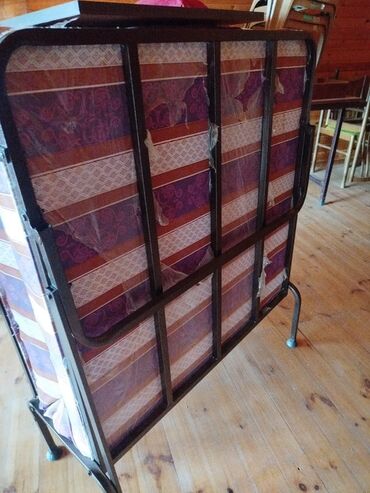 Yığılabilən dəmir çarpayı – matrassla - Çərçivə: möhkəm metal konstruksiya, qatlanan mexanizm - Matrass: çiçək naxışlı parça üzlüklü, qatlanan çarpayı ilə inteqrə - Ölçü: bir nəfərlik (standart si...