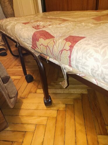 Раскладушка примерно 2000 года. Московского завода. В нормальном состояние. Вес. Держит до 150 кило. Размер длина 190.ширина 86 см. Yığılabilən çarpayı/Raskladuşka - Ölçü: təxmini tək nəfərlik (ta...