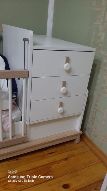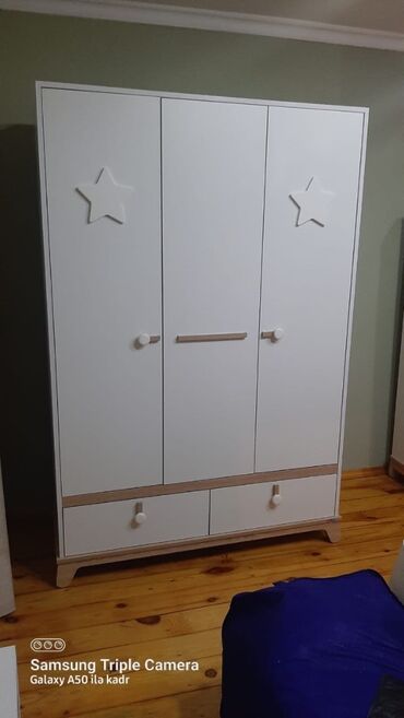 Yataq otağı dəstləri Model 1 – Kartanesi yataq dəsti - Müasir minimal dizayn: ağ korpus, qara detallı başlıq - Sürgülü qapılı şkaf (biri güzgülü panel) - Çarpayı bazalı - Tumba və üç çekmecəli ter...