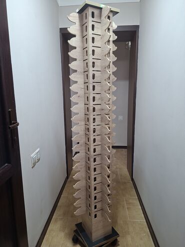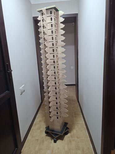 Dörd tərəfli, fırlanan və təkərli taxta vitrin/askar-displey stendi.