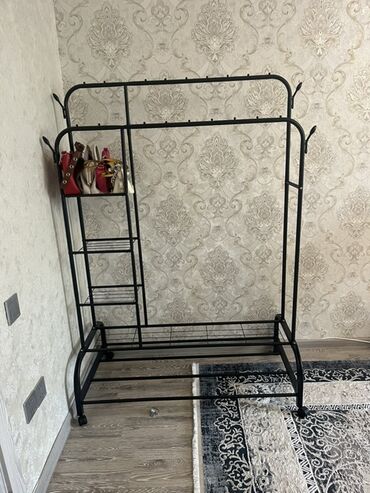 - Rəflər: aşağı hissədə iki ədəd geniş metal tor rəf ayaqqabı və qutular üçün; yan blokda əlavə 3 dar rəf
