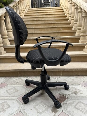 Salon və ev istifadəsi üçün nəzərdə tutulmuş təkərli qara salon kreslosu. Kreslo rahat oturacaq və kürək hissəsi ilə təchiz olunub, bu da uzun müddət oturduqda belə rahatlığı təmin edir. Təkərlər hərəkətliliyi asanlaşdırır, qollar isə əlavə dəstək verir. Salon mühiti və ya evdə işləmək üçün uyğundur.