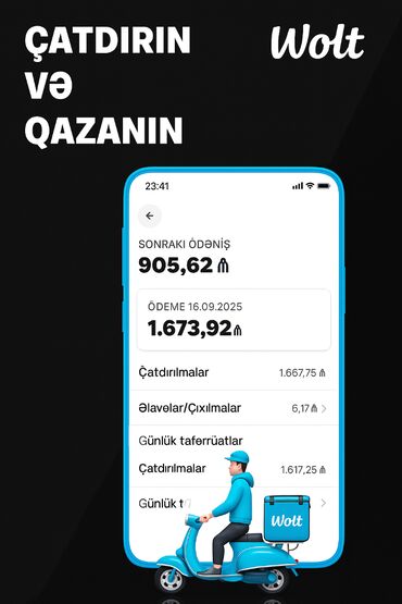 Wolt ☑️ Kuriyeri olaraq aylıq 3000 aznə qədər qazana bilərsiz. ☑️ Velosipetin yoxdur? pulsuz 29 ölçü yeni və skoruslu velosipet veririk. 🚲 işləməyiz üçün (günlük 8 sifariş aparma şərti ilə) Üst...