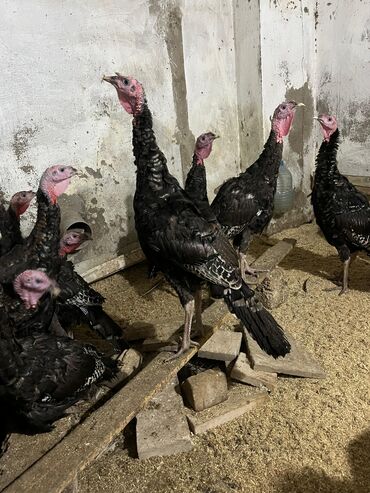 - Şəkillərdəki qara rəngli, uzunboyun hinduşkalar qrupu