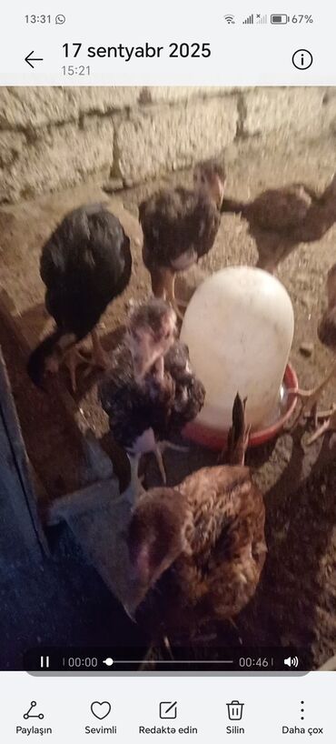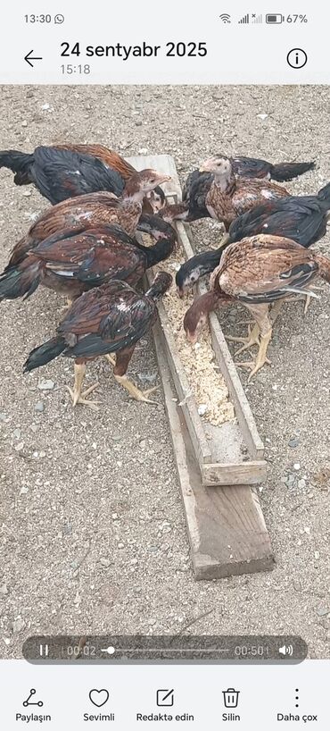 Məhsul: kənd toyuqları (cücələr/erkək cücələr) Təsvir: - Qəhvəyi və qara-lal rəngli lələklər, parlaq sarı pəncələr. - Yumurtadan çıxmış və böyüməkdə olan yerli cins qarışıqları; şəkillərdə bir neç...