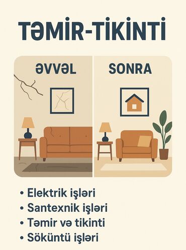 #TəmirTikinti #EvTəmiri #UstaXidməti #EvRenovasiya #Elektrik #Santexnik #Tikinti