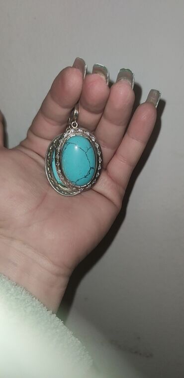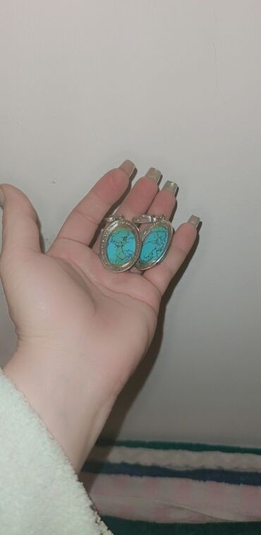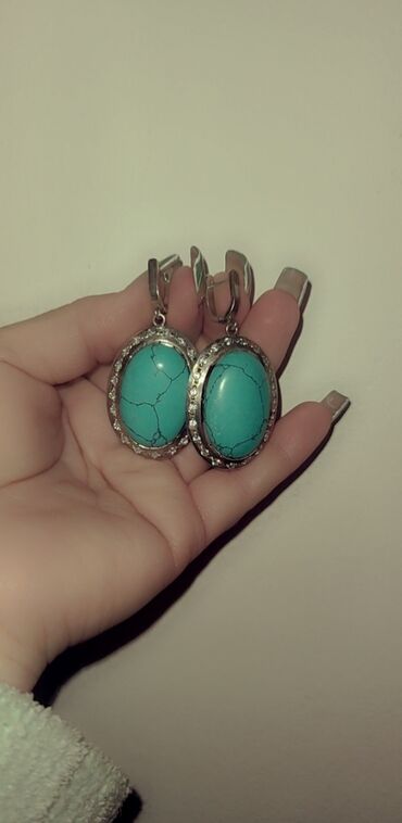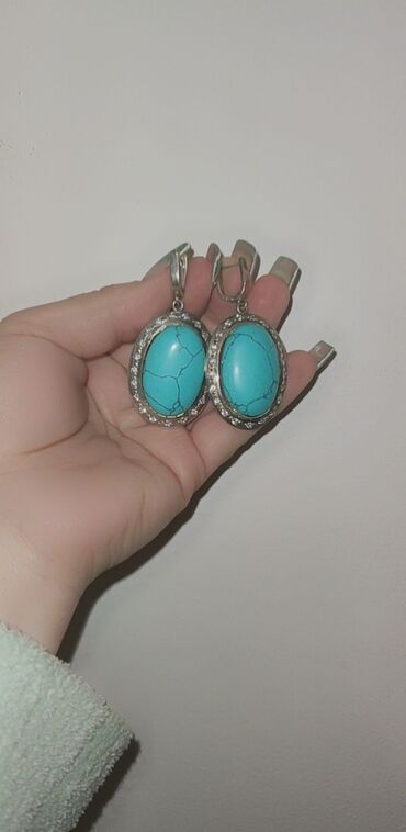 Firuzə daşlı gümüşü sırğalar. Təbii daşdır. Qədimidir, təmiz gümüşdür. Probu var. Ölçüsü 3-3.5sm olar