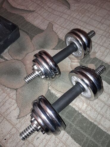 Qantell Qantel 5-li set Hem qantel kimi stang kimi gira ucun isdifade bir eded elcek 2 ed stang etmey ucun qrift 5 li qantel ştanq dəsti 5kq + 5kq = 10kq - 45 Azn 7,5kq + 7,5kq = 15kq - 55 Azn 10...