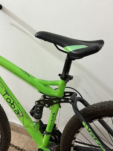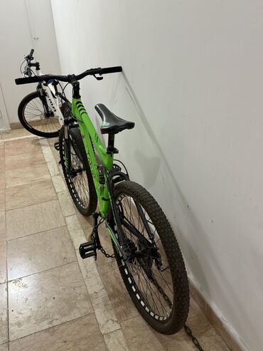 Dağ velosipedi – yaşıl rəng, tam asma (ön amortizator + arxa yaylı amortizator)