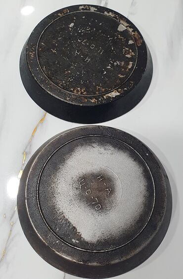 2 fərqli tava və 1 aşsüzən. 1)Qədimi, ağır dəmir tava. Diametri 32 sm, hündürlüyü 5 sm, işlənmişdir. Qiyməti 30m 2)Qədimi tava. Diametri 25 sm, hündürlüyü 3 sm. Qiyməti 12m. 3)Dəmir aşsüzən, işlənm...