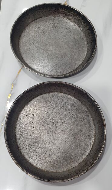 Məhsul: 2 ədəd tökmə dəmir yuvarlaq tava (kənarı alçaq, dərin pizza/paxlava tipli)