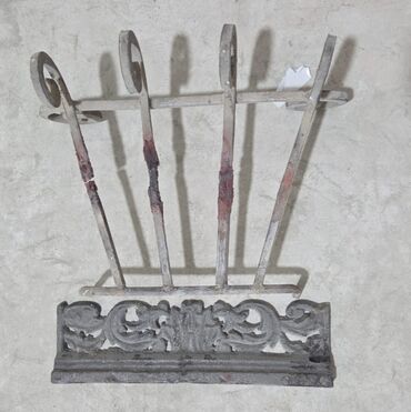 2) İçlik/ızgara tipli odun-kömür tutacağı – alt baza dekorlu, yuxarıda spiral formalı dayaqlar.