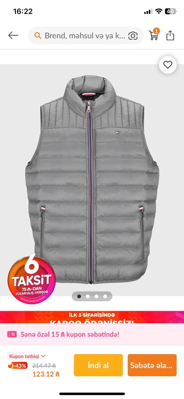 Tommy hilfiger yelek L razmer etiket uzerinde olcu kicik oldu deye satilir aldigimnan awagi,Turkiyeden sifariwle gelib.123 azn alinib satilir 100azn unvan 20 yanvar son qiymet endirim yoxdu