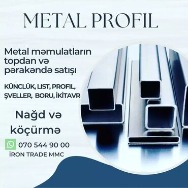 Topdan satış. nağd və köçürmə. İron Trade mmc. hər ölçüdə profil ,boru ,list,ikitavr, şveller vəs metal məmulatların satışı. Ünvan baksol yolu. Vhatsap aktivdir.anbardan satış