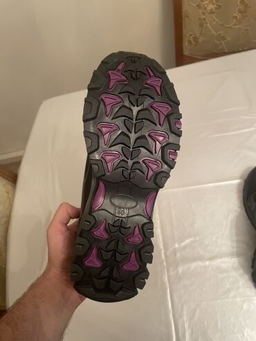 - Rəng uyğunluğu: bənövşəyi aksentlər bağcıq deşiklərində, iç astarda və altlığın protektor hissələrində