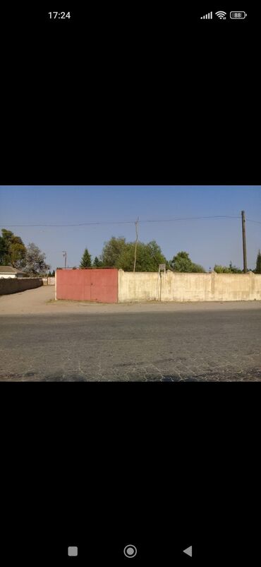 Avtomobil yolunun kənarında yerləşən, hündür beton hasarla tamamilə əhatələnmiş iri torpaq sahəsi.