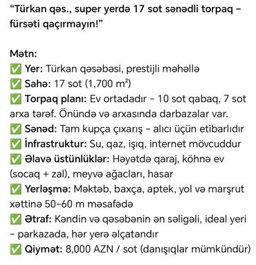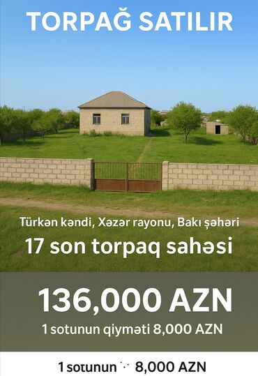 “Türkən qəs., super yerdə 17 sot sənədli torpaq – fürsəti qaçırmayın!”