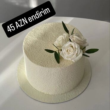 Zərif dizaynlı, ağ rəngli tort. Tortun ətrafı dalğalı bəzəklərlə əhatə olunub və üzərində incə çiçəklər var. Ad günləri, nişan və ya digər xüsusi günlər üçün əla seçimdir.