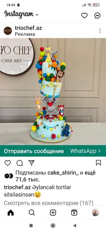 Bali tort sifarisle hazirlanir.Temiz mehsullardan,dadli ve lezzetli tortlarin sifarisi en az 1-2 gun onceden goturulur.Kq-mi 20 manat.Sifaris ucun whatsapa yaza ve ya zeng ede bilersiniz.