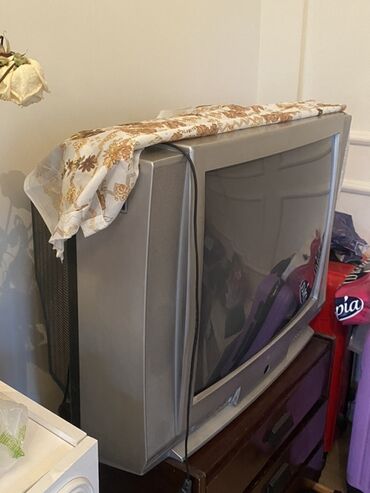 Toshiba televizor (CRT, gümüşü rəng) - Ekran: təxminən 21–24 düym diaqonallı, 4:3 formatlı katod-şüalı boru (CRT) - Korpus: gümüşü rəng, ön paneldə Toshiba loqosu - Girişlər: ön paneldə AV girişlə...