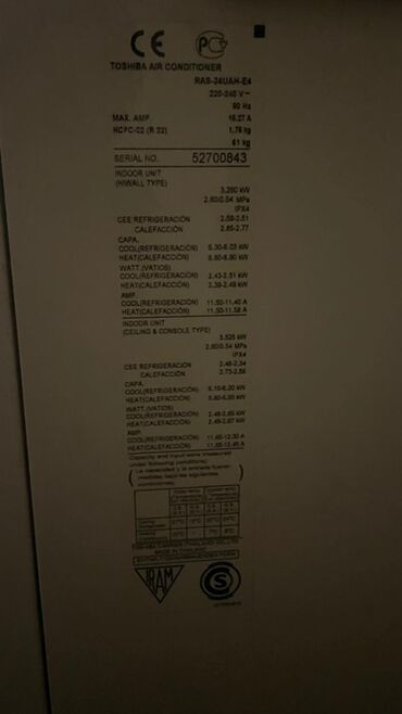 Qeyd: Etiket məlumatlarına əsasən R22 qaz ilə işləyir. Indikativ göstəricilər məhsul üzərindəki lövhələrdən götürülüb.