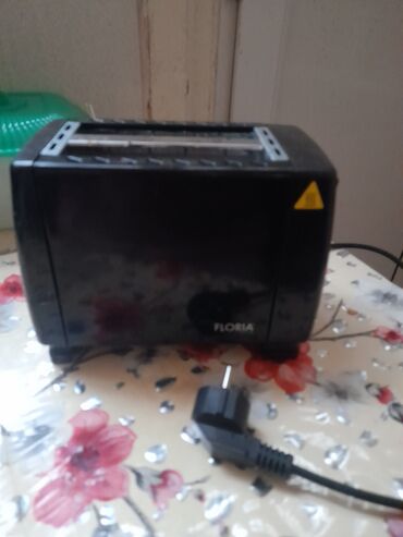 - Floria tost aparatı: 2 dilimli, üst hissədə geniş yarıqlar, elektrik şnur və Avropa tipli fiş. Çörəyi bərabər qızartmaq üçün klassik mexaniki idarə paneli, korpusda istilik xəbərdarlıq nişanı.