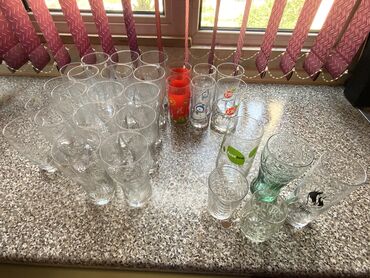 1)”Sprite” böyük ölçülü, su-sok stəkanları. Təzədirlər, 5 dənədir. Qiyməti 5m. 2)30 ədəd su,sok stəkanları, təzədirlər, tək-tək satılmır. Hamısı bir yerdə 25m.