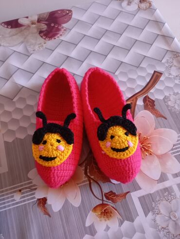 Əl işi toxunma uşaq corabı - Material: yumşaq akril/sap qarışığı iplik (şəkildə açıq bej rəngdə), elastik və nəfəsalan toxuma - Ölçü: körpə/uşaq üçün; qısa boğazlı model - Dizayn: üst hissədə elas...