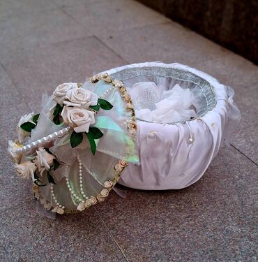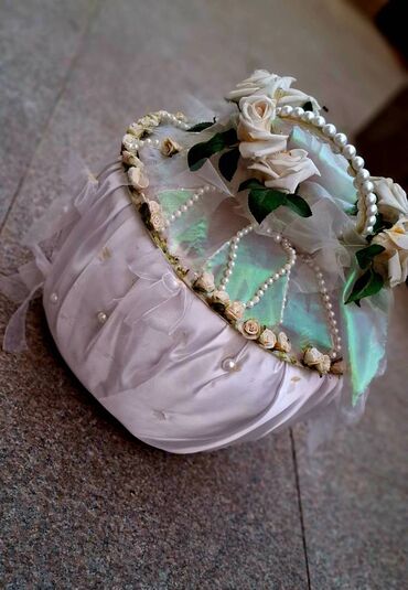 İdeal veziyyetdedir.12 eded xonçadır.Üzerinde elave olaraq verilir/12 eded bahalı modelden yığılmış güllər-2 manken bahalı modelden,2 taxta veşilka,2üzük qabı ve üzük mankeni,4 eded göbelekkimisinden.