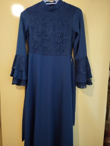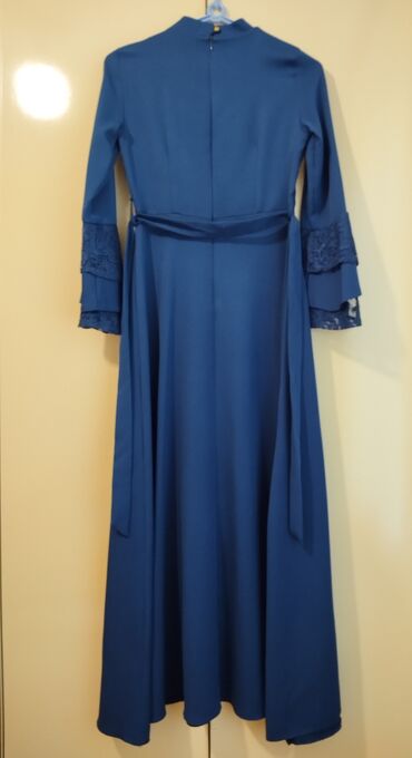 Mavi rəngli ziyafət/gecə libası - Model: dizaltı uzunluqda, qolu 3/4