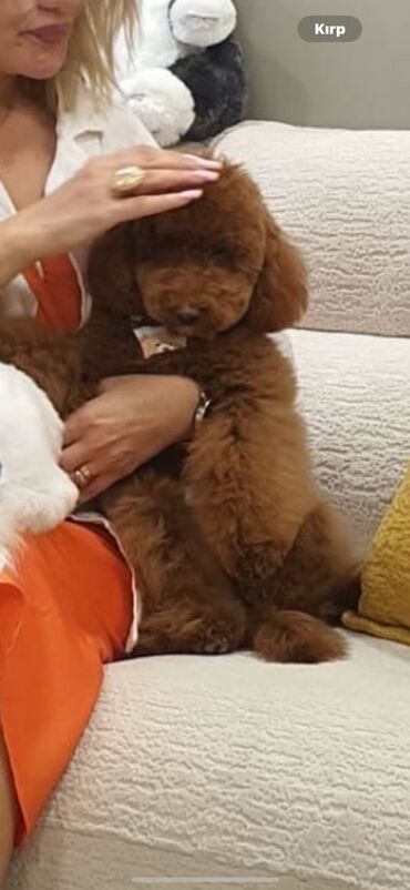 Miniatür pudel balası - Cins: Toy/Mini Poodle (şirin qıvrım tüklü, krem/qızılı rəng) - Ölçü: kiçik, mənzil üçün uyğun - Xasiyyət: mehriban, ağıllı, uşaqlarla və digər ev heyvanları ilə rahat uyğun...
