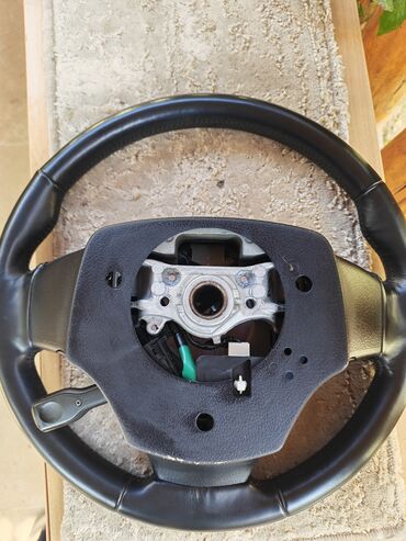 Lexsus -toyota Avtomobil sükanı – boz dəri üzlük, tikişli kənarlar. Mərkəzi hissə və hava yastığı bölməsi çıxarılıb, montaj üçün metal karkas və şleyflər görünür. Sol tərəfdə 3 idarəetmə düyməsi (s...