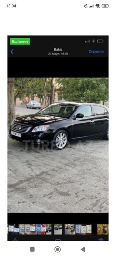 Toyota Avalon – qara rəngli, sedan, avtomatik transmissiya.